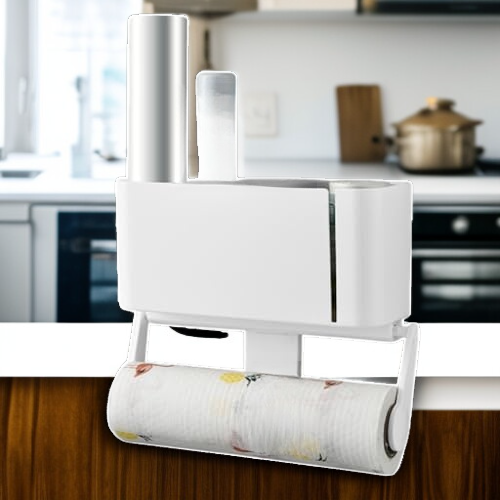 ● Multi-functional kitchen storage stand combines fresh-keeping film, garbage bag, and towel holder, maximizing your refrigerator and wall space efficiently.